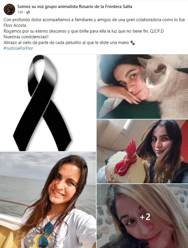 Según el diario El Tribuno, Acosta estudiaba Licenciatura en ciencias biológicas en la Universidad Nacional de Salta, y era parte de un grupo de proteccionistas de animales en Rosario de la Frontera. “Con profundo dolor acompañamos a familiares y amigos de una gran colaboradora como lo fue Flor Acosta. Rogamos por su eterno descanso y que brille para ella la luz que no tiene fin. Abrazo al cielo de parte de cada peludito al que le diste una mano #JusticiaPorFlor”, la despidió el grupo animalista Somos su voz.